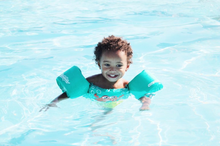 Headband // Swimsuit // Shoes // Swim Floats Â